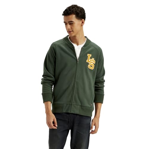 Levi's Men's Brand Logo Green Band Neck Zip-Front Sweatshirt
