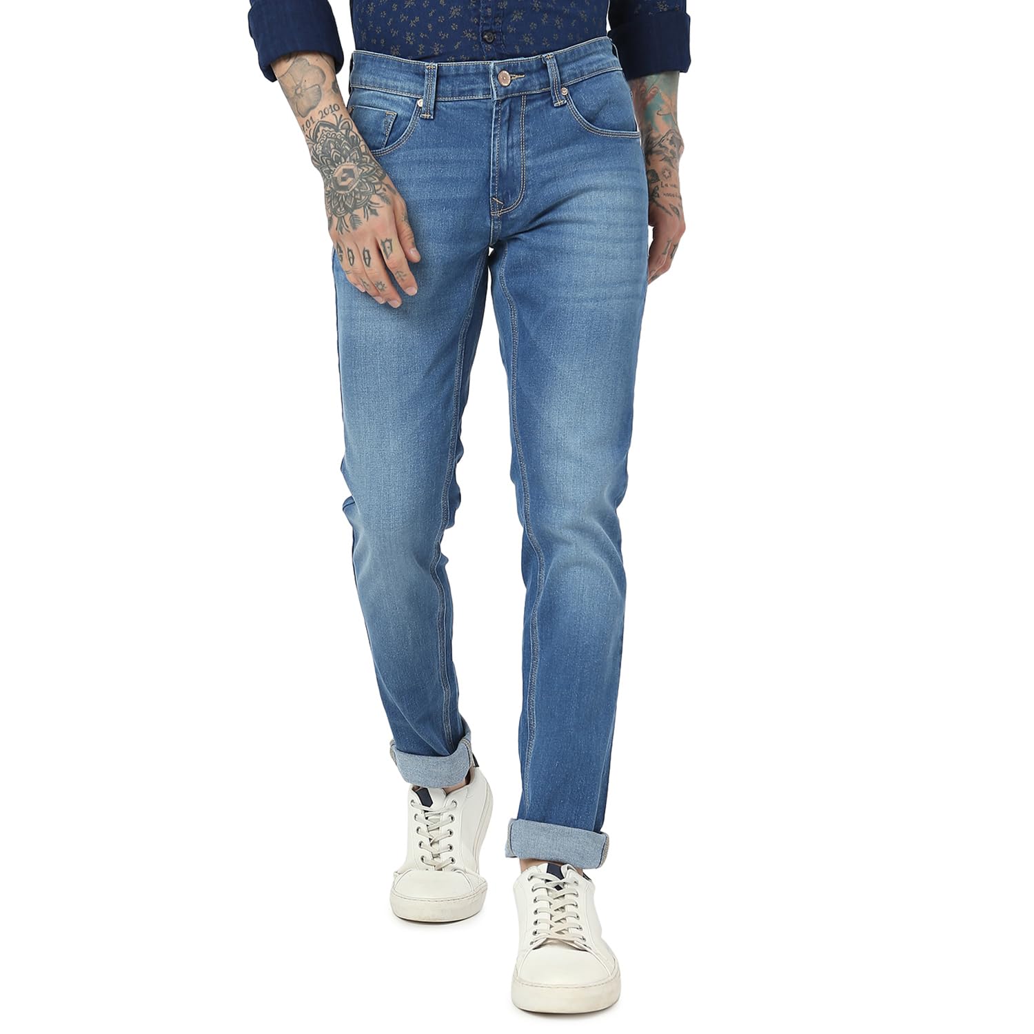 Spykar Men's Skinny Fit Low Rise Jeans Mid Blue