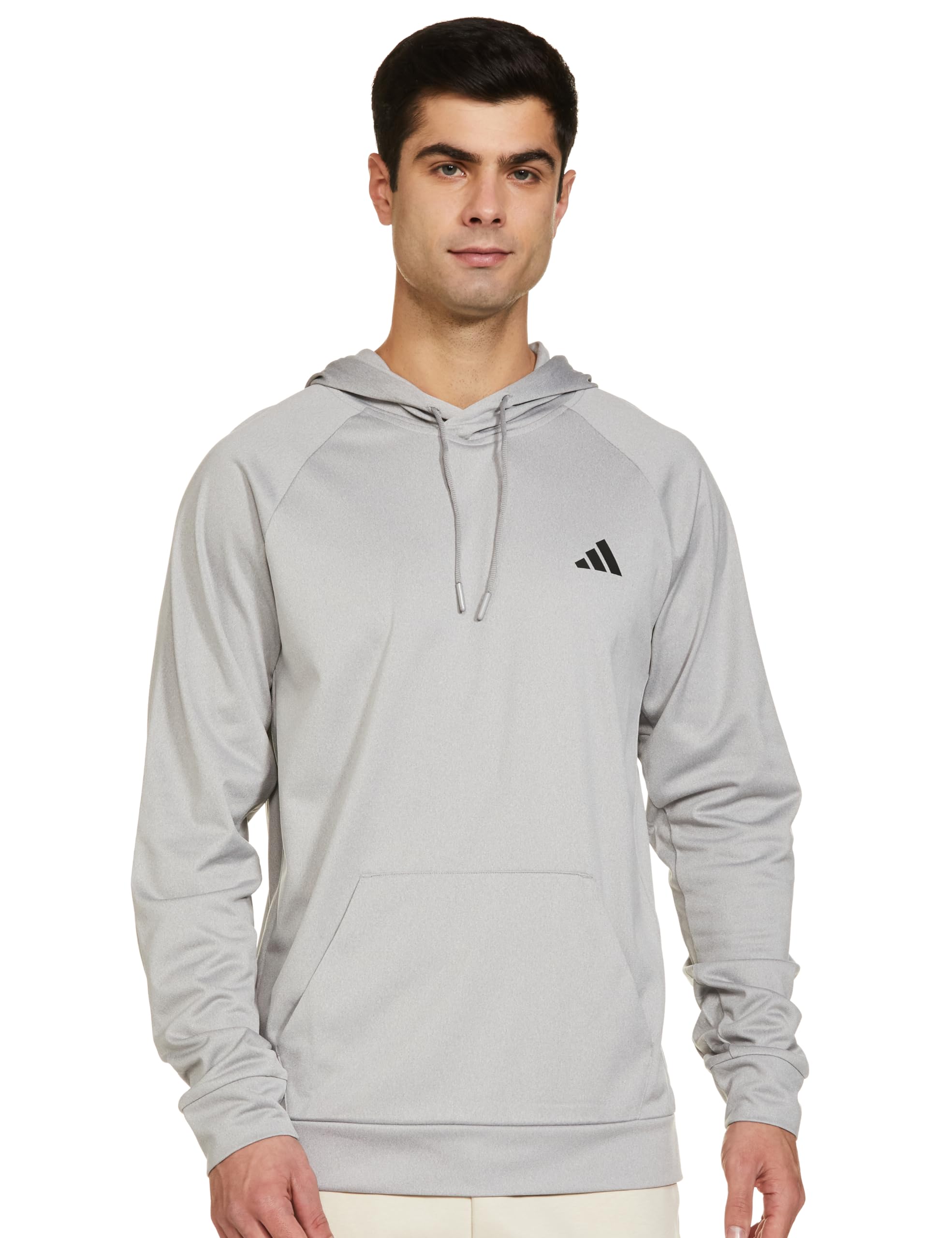 Adidas Men's Polyester Neck Hooded Sweatshirt (IW2937_MGREYH/Black