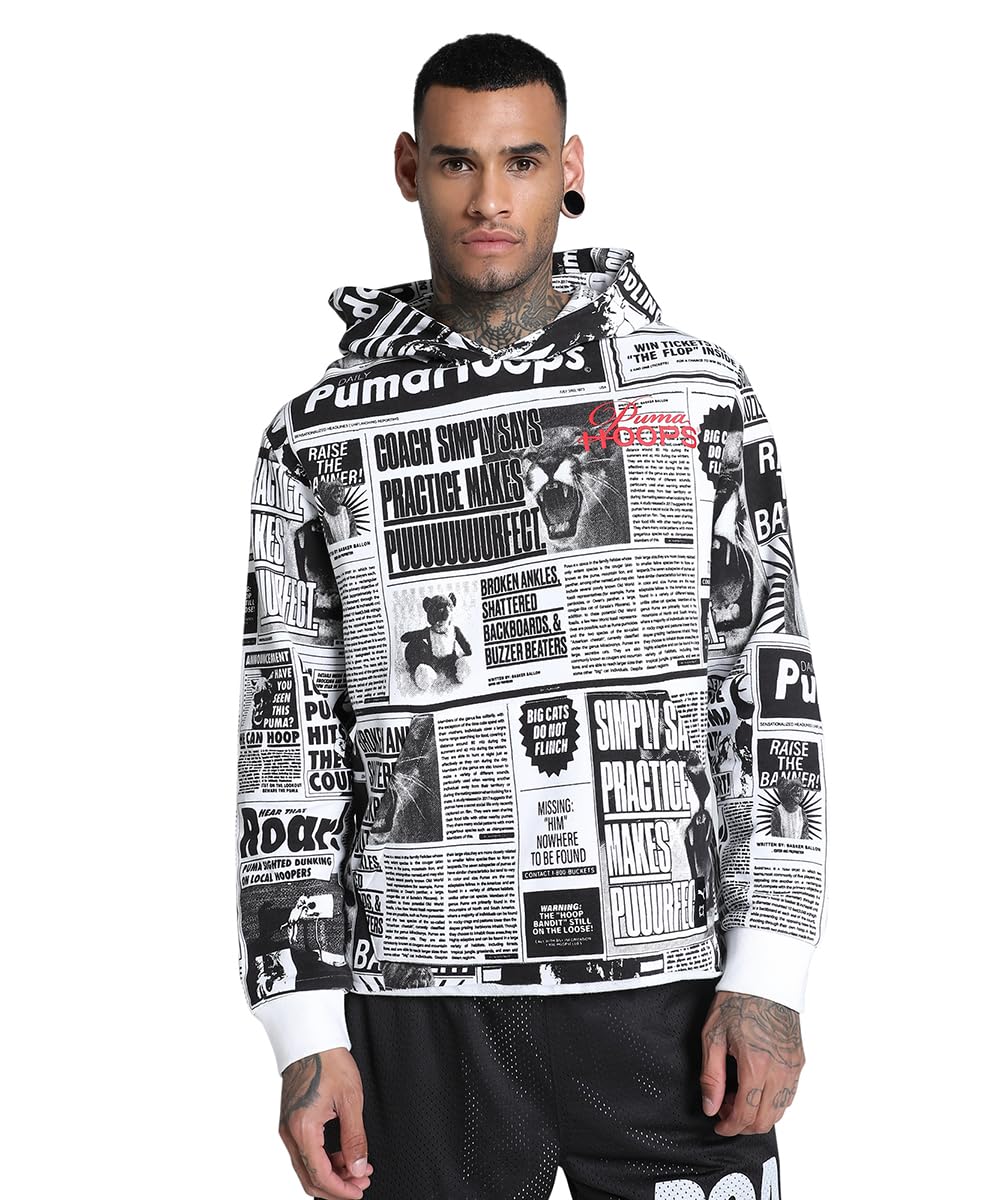 Puma Men's Cotton Hooded Neck Relaxed Sweatshirt (627157_Black-White, Medium