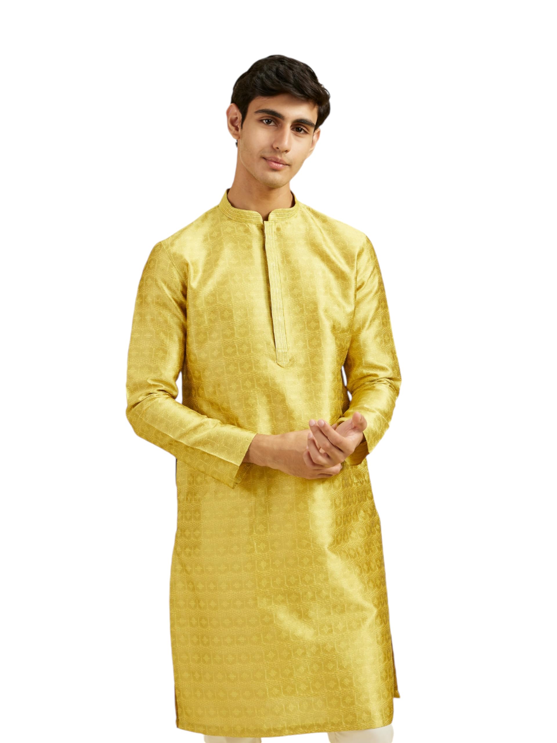 DIWAS BY MANYAVAR Men's Art Silk Jacquard| Self Design Kurta (Mehndi Green,M)
