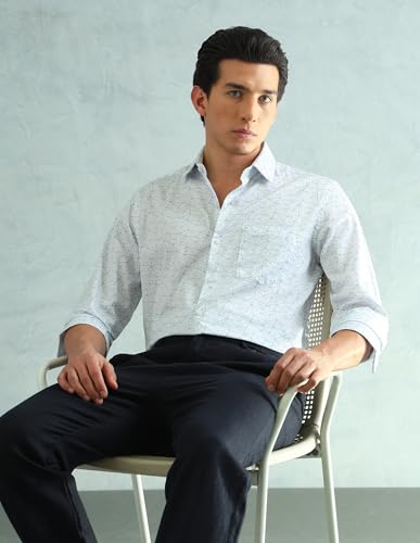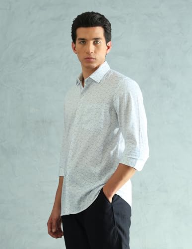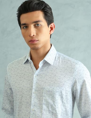 Arrow Men’s Geometric Regular Fit Shirt (ARAEOSH2899_Blue