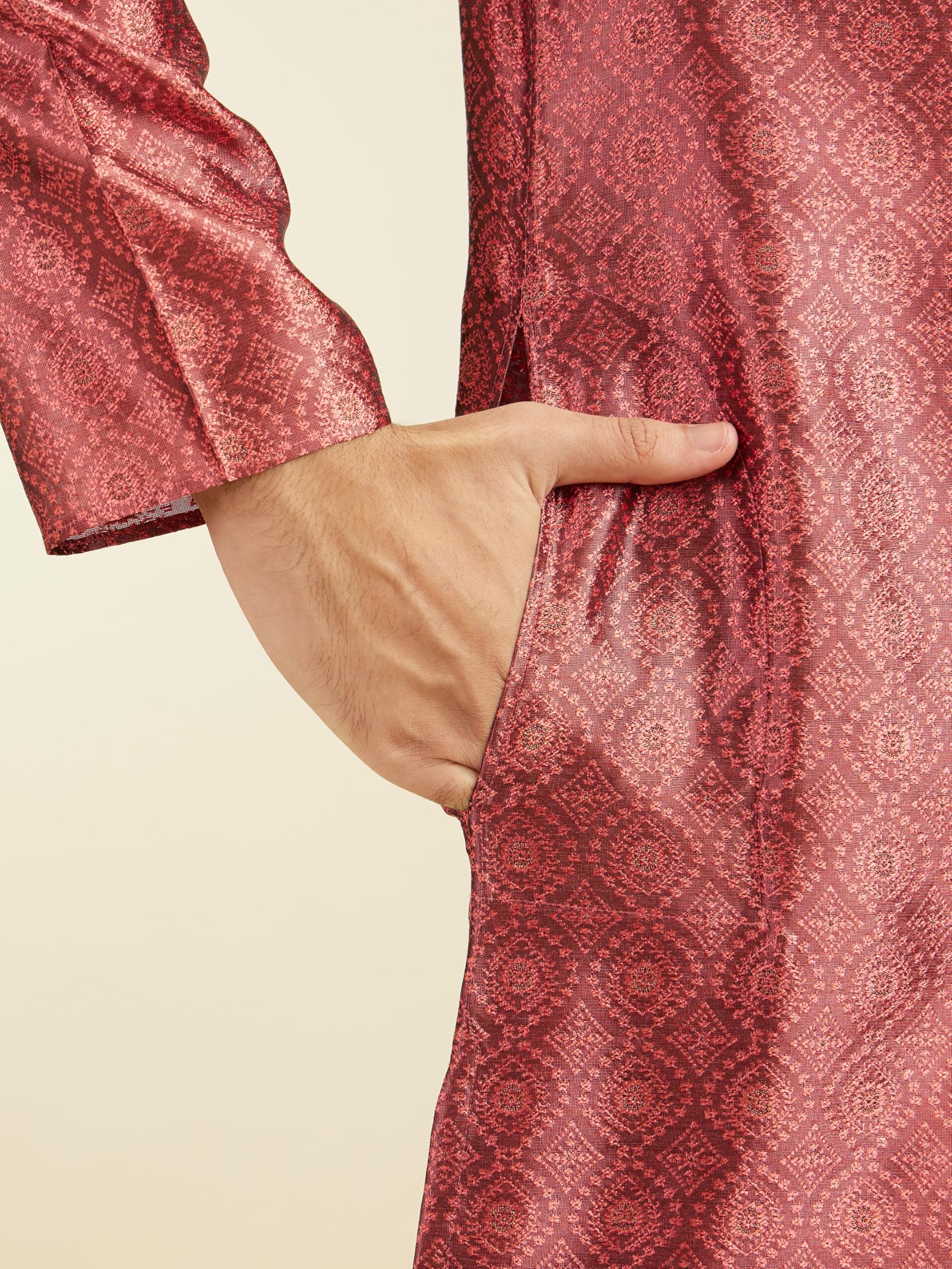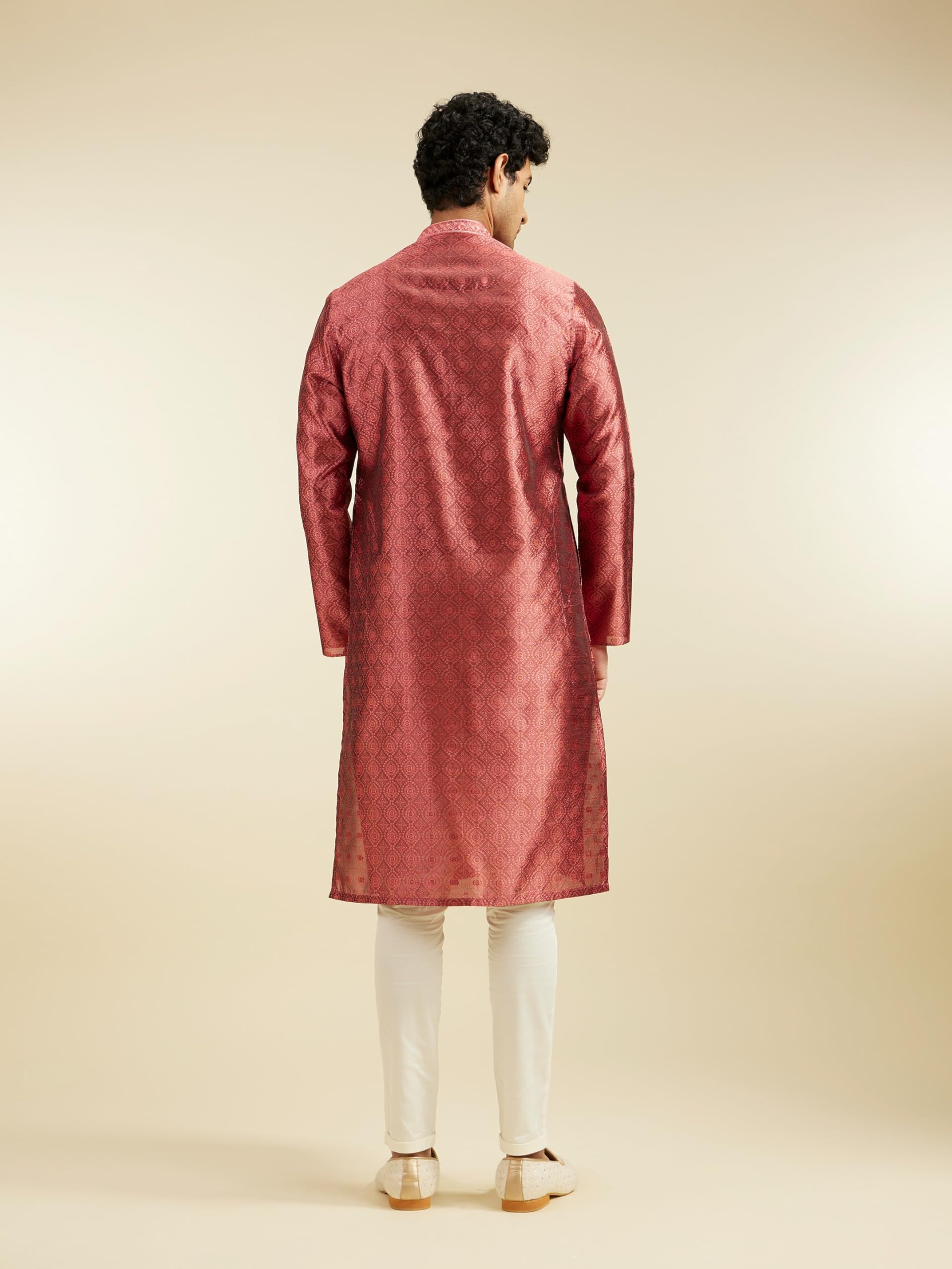 • Style: Step up your style game with our rust red ogee jaal patterned kurta. The vibrant rust hue and cool ogee jaal pattern are perfect for making a statement. Pair it with black trousers and loafers for a look that’s bold, on-point, and ready to slay.
