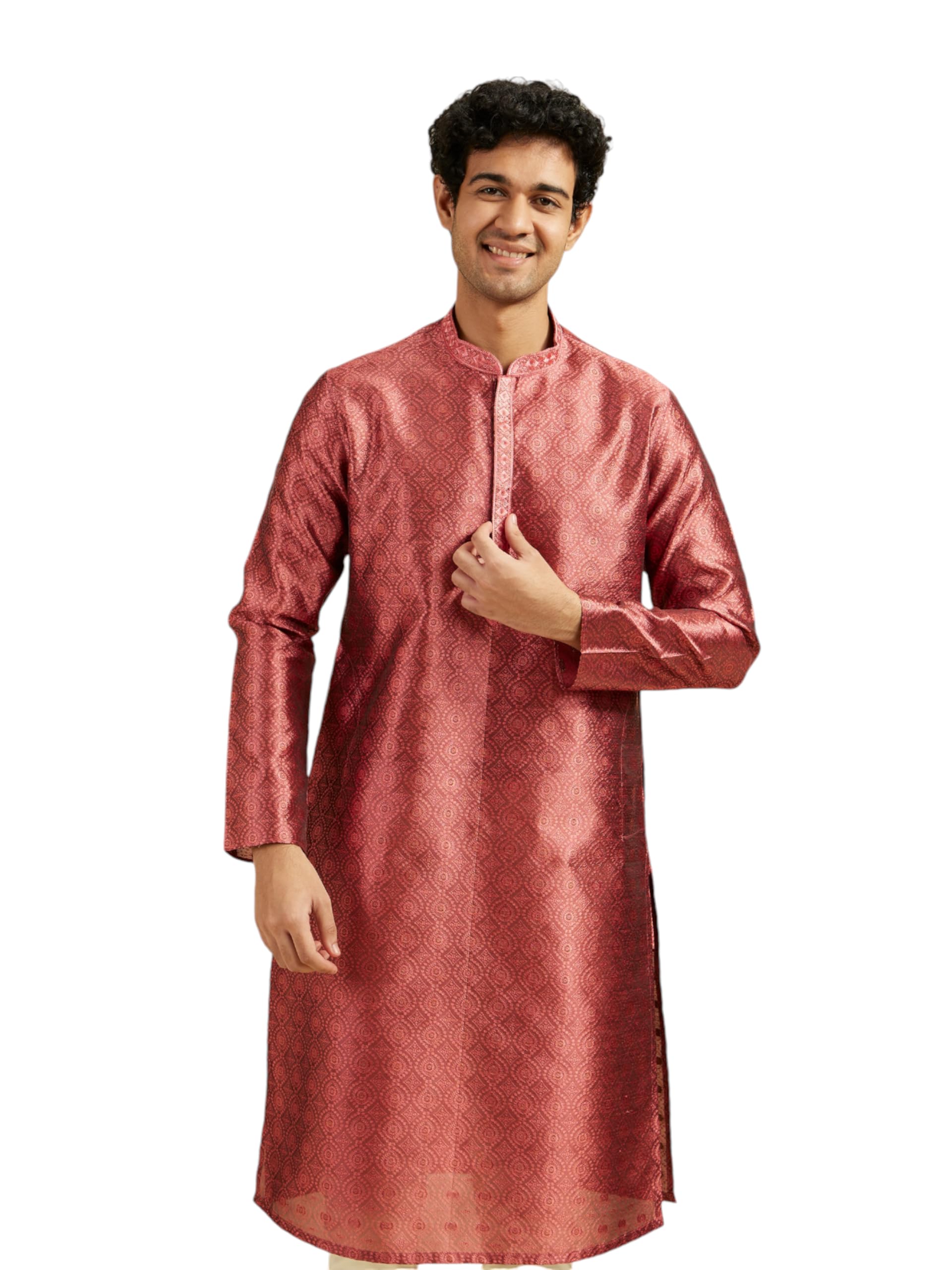 DIWAS BY MANYAVAR Men’s Art Silk Jacquard| Self Design Kurta (Rust,XL)