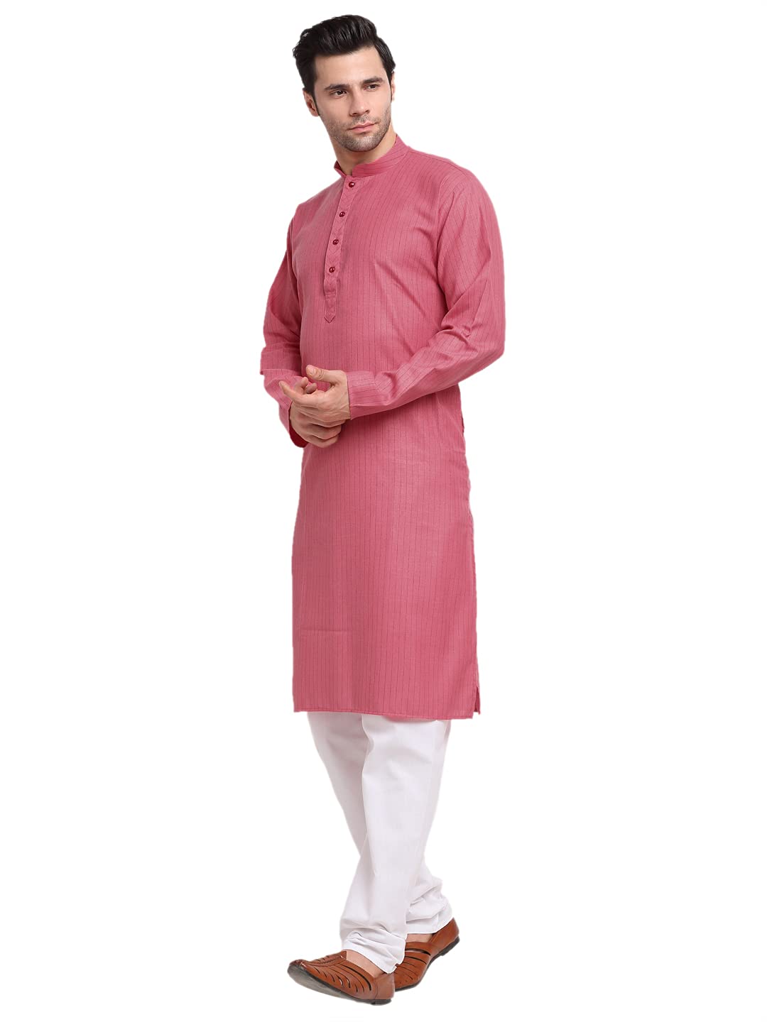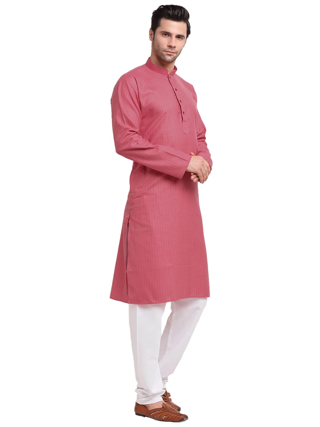 KRAFT INDIA Men Cotton Striped Pink Kurta Pyjama Set Size Medium