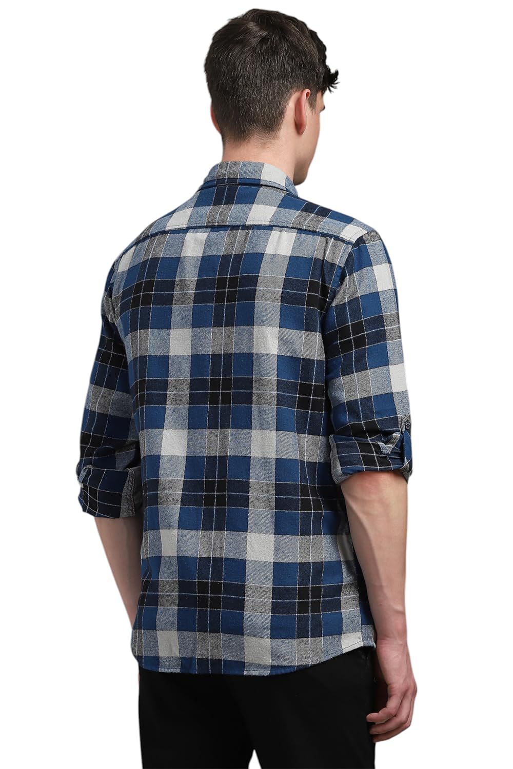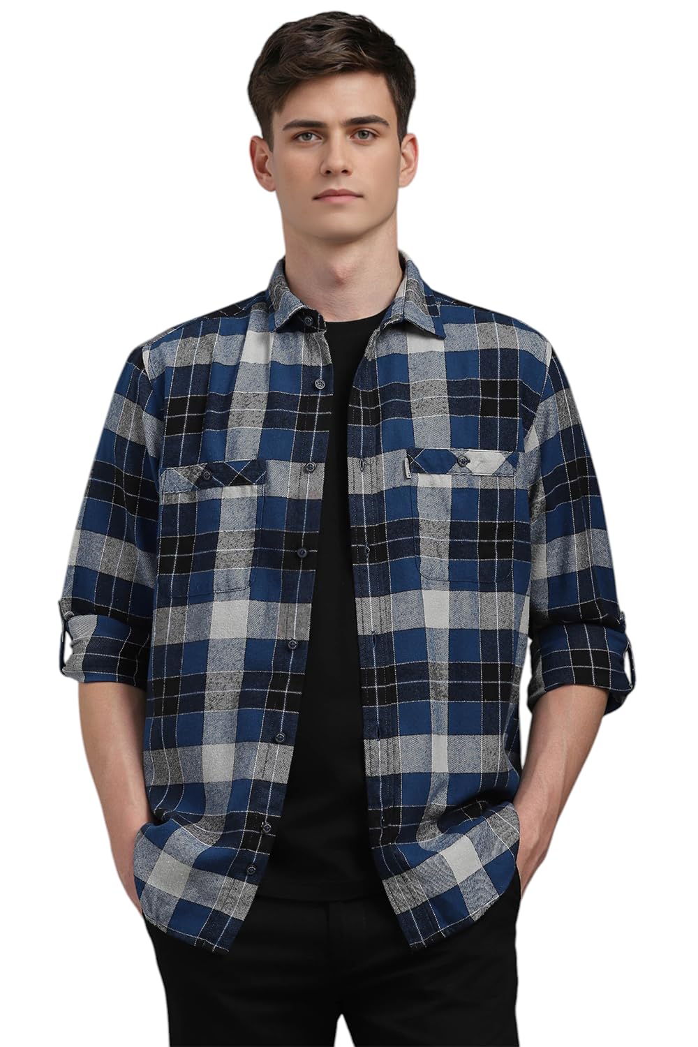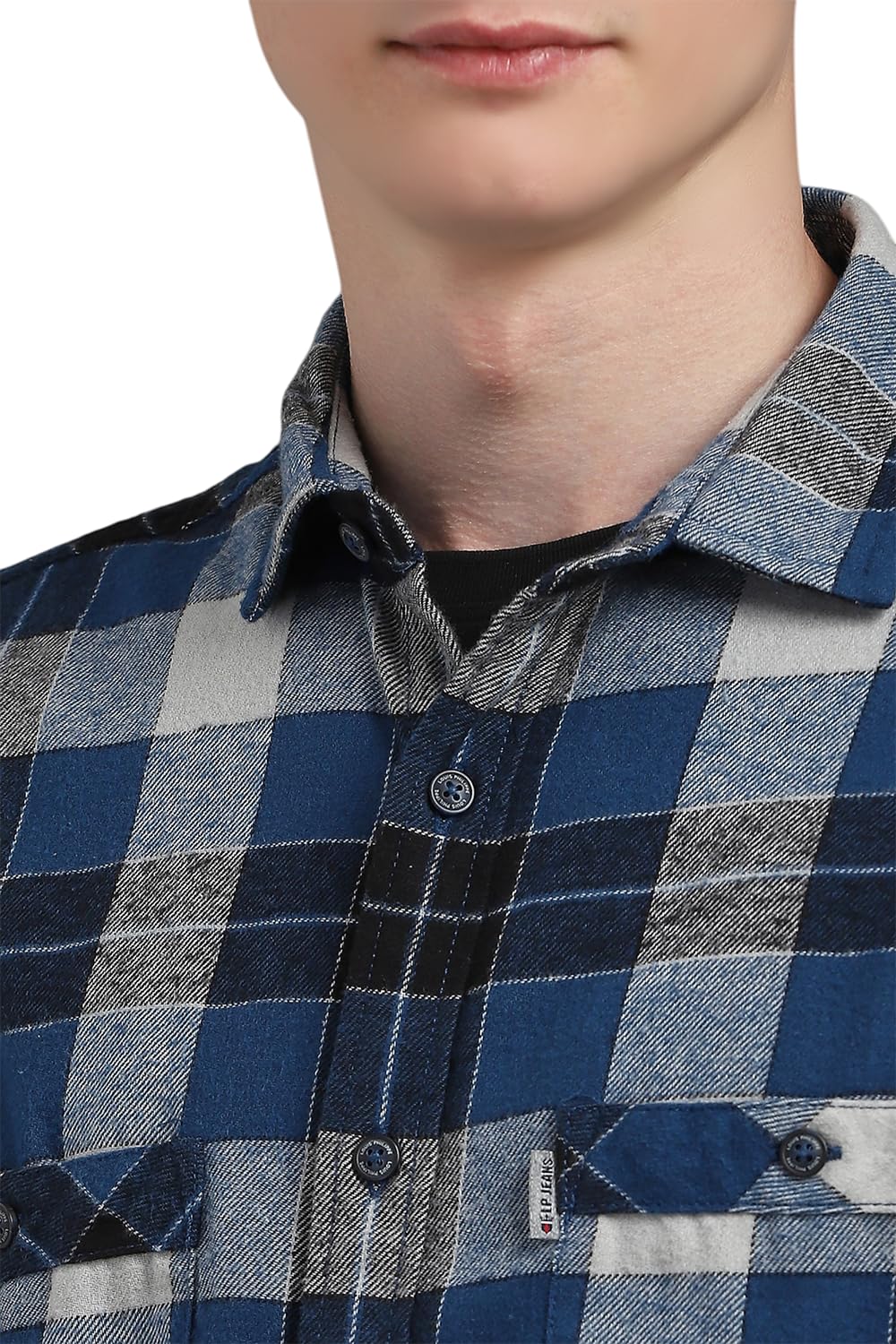 Elevate your casual wardrobe with this Louis Philippe blue check shirt. Crafted from soft cotton, it ensures all-day comfort while adding a stylish flair to your ensemble. The timeless check pattern provides a modern touch, perfect for any casual occasion. Enjoy the combination of comfort and sophistication, making this shirt an essential piece for effortless style. Experience the appeal of this versatile classic and enhance your collection today.