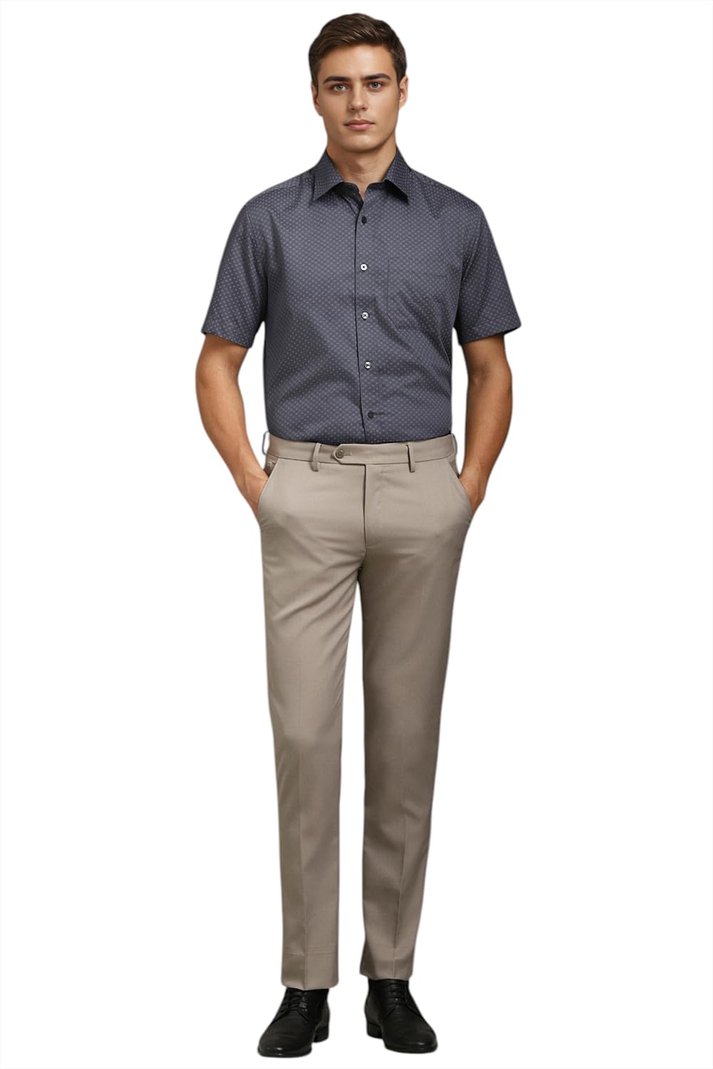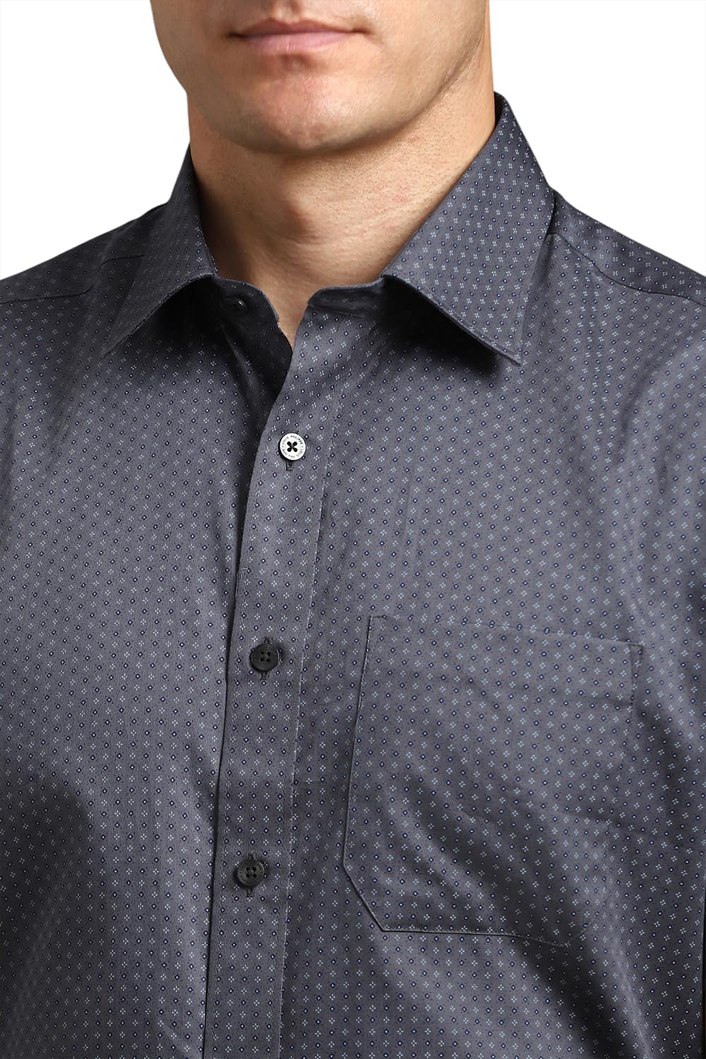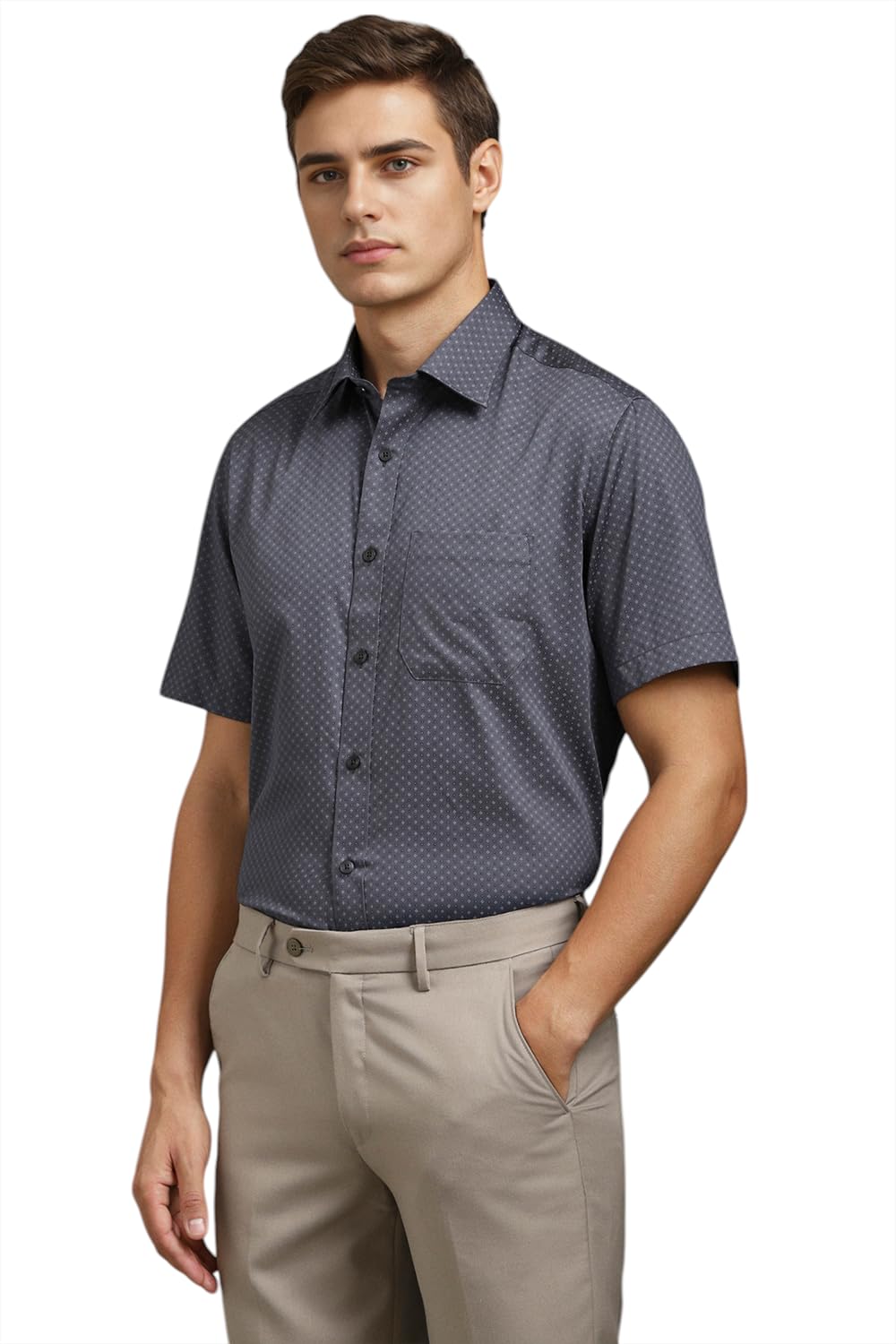 Showcase your refined sartorial taste in this Grey Print shirt from Louis Philippe at a Formal event. Tailored in Classic Fit , this shirt features a Regular Collar , Half Sleeves , and is crafted from exquisite 100% Cotton .