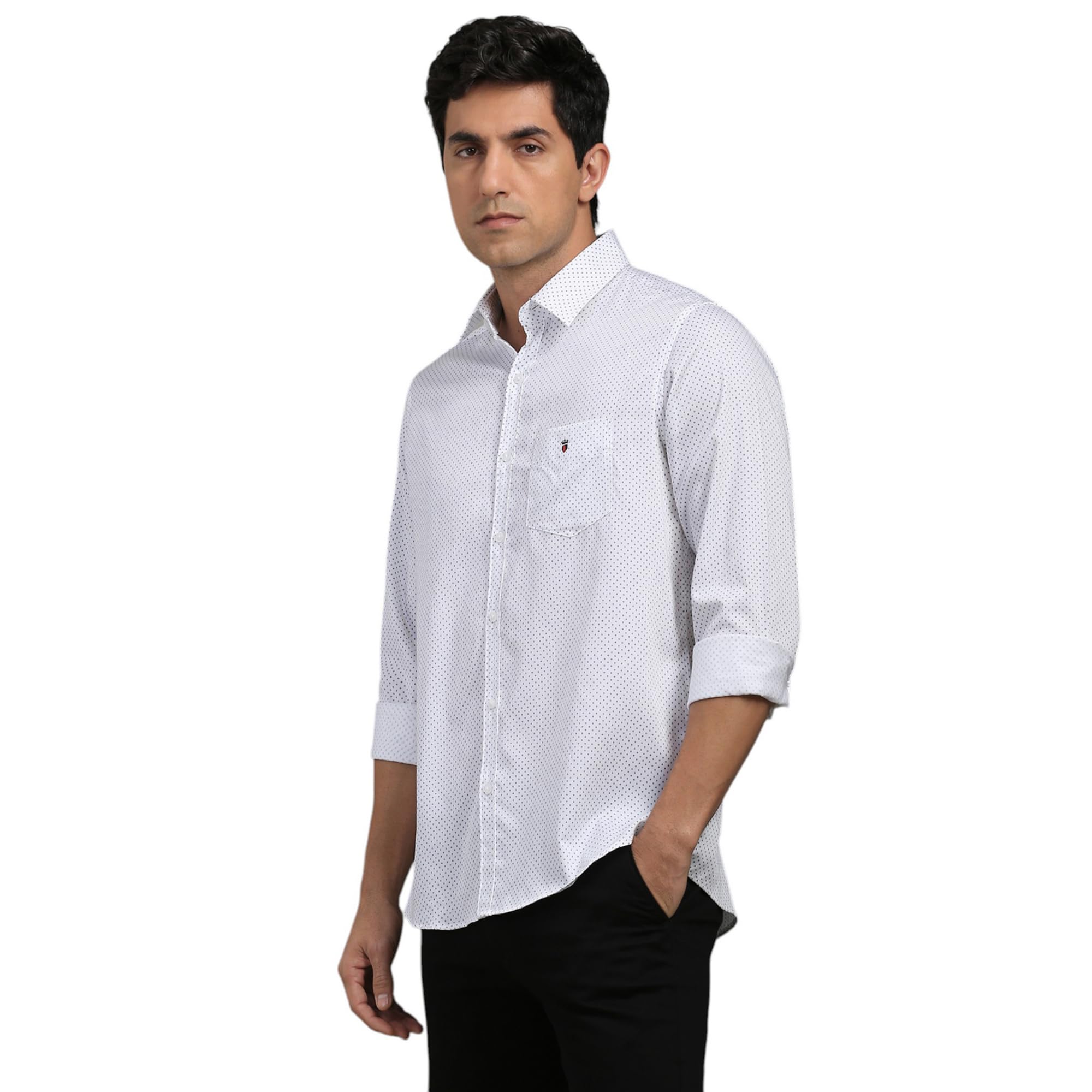 Showcase your refined sartorial taste in this White Print shirt from Louis Philippe Sport at a Casual event. Tailored in Slim Fit , this shirt features a Regular Collar , Full Sleeves , and is crafted from exquisite 100% Cotton .
