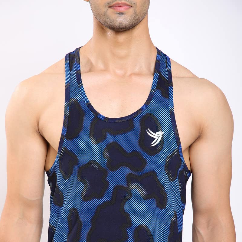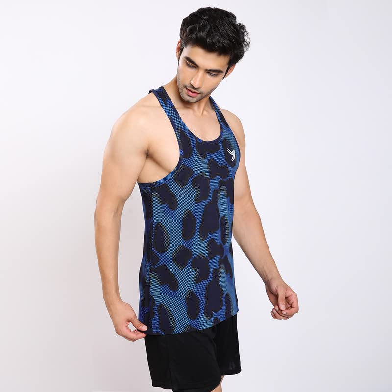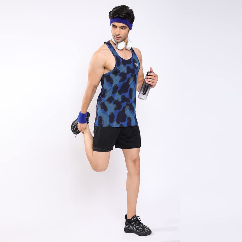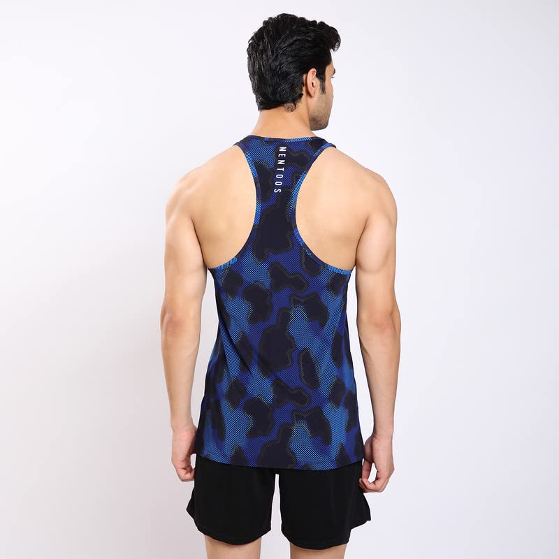 Mentoos Men Polyester Check Print Regular Fit Gym Innerwear Vests with Deep Cut Style (Color:-Blue, Size:-L)