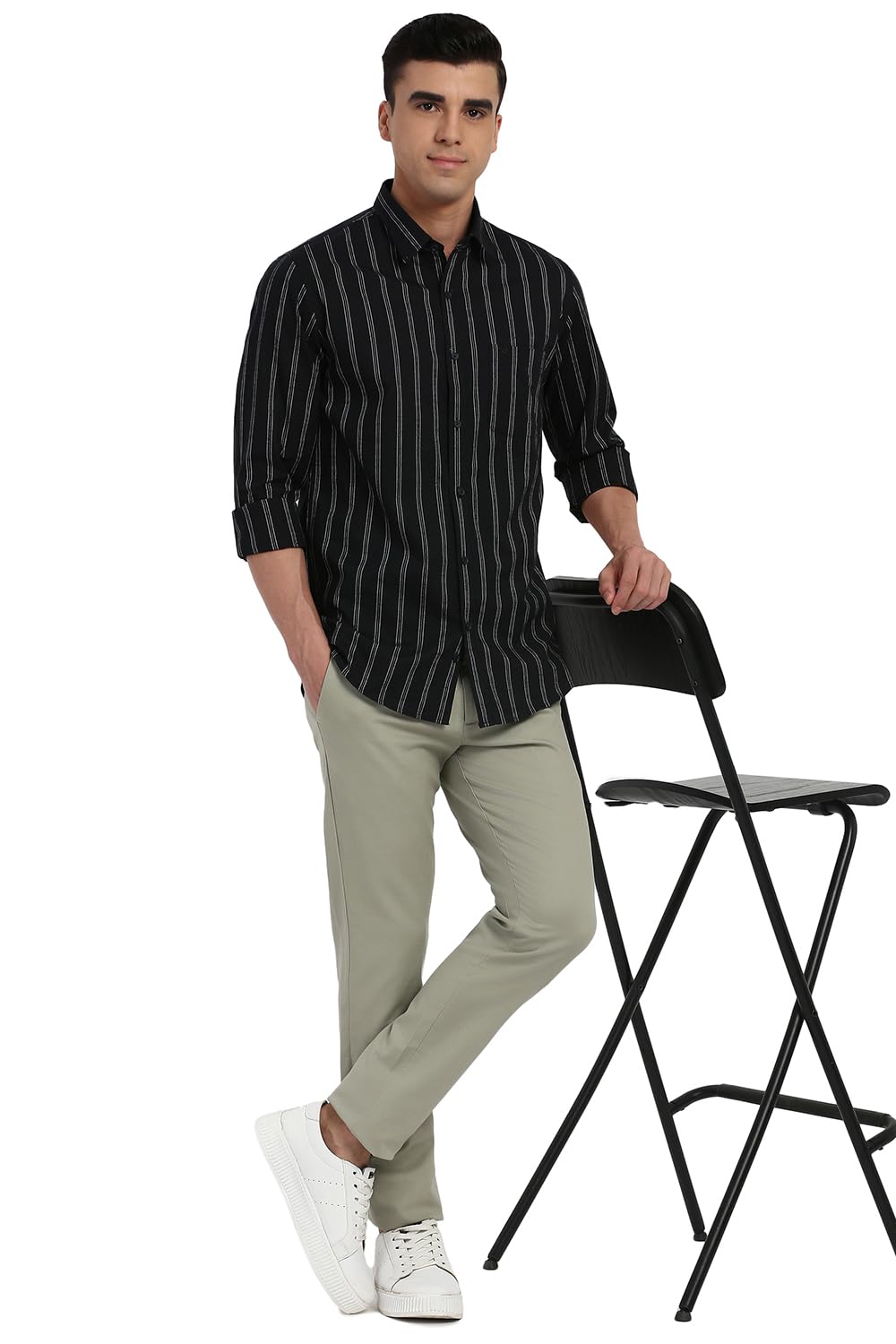 This Peter England Casuals full sleeves casual shirt in light blue features a trendy stripe pattern that enhances your everyday style. Crafted from soft cotton, it offers a slim fit for a modern silhouette, perfect for casual outings. The full sleeves ensure comfort, while the fabric provides breathability, making it an ideal choice year-round. Embrace effortless sophistication with this versatile addition to your wardrobe.