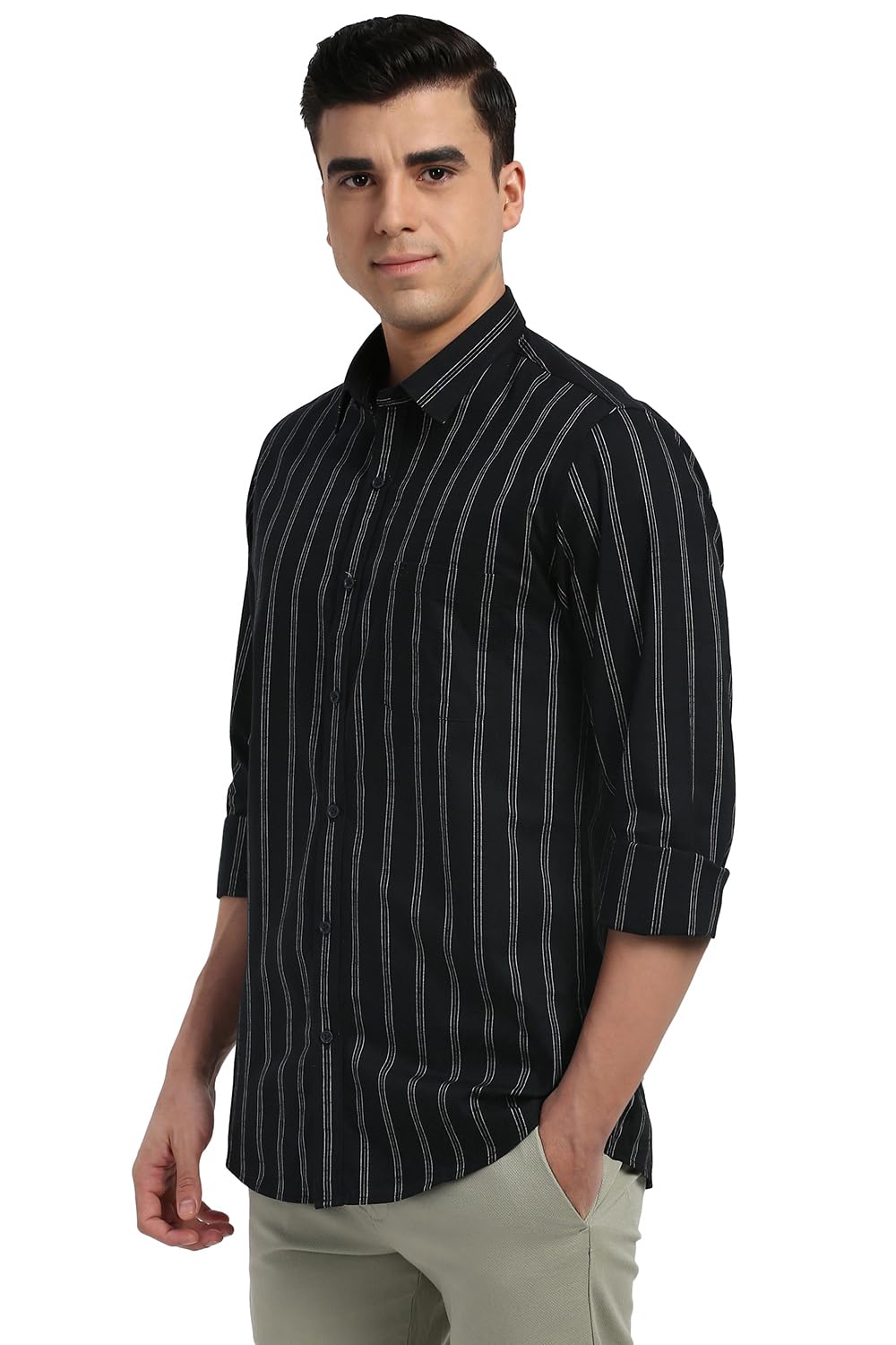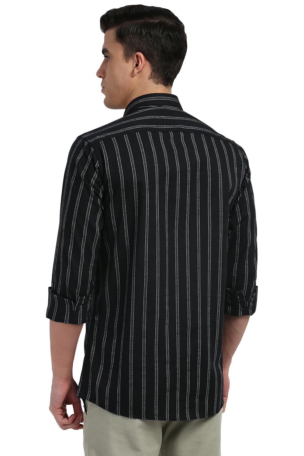 Peter England Men’s Striped Slim Fit Shirt (PCSFSSLPO16179_Navy