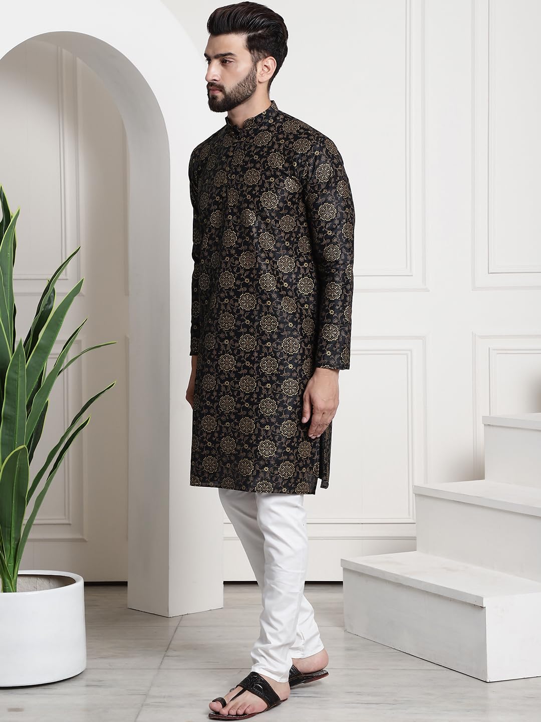 - Collar: Mandarin, Sleeves: Full, Fit type: Regular/Comfort, Length: Knee Length Kurta