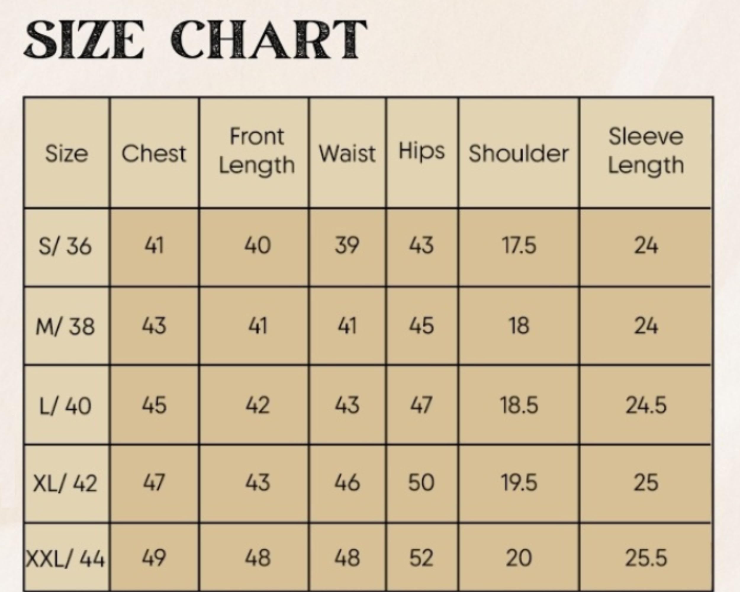 - Product Size Guidance (A): Please refer to CHEST size measurement in the SIZE CHART for your correct size