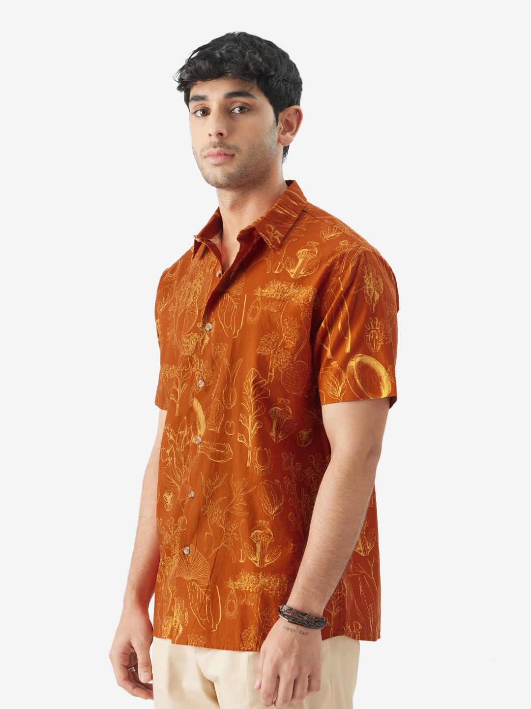 The Souled Store Tropical Beat Men and Boys Short Sleeve Collared Neck Regular Fit Button Down Orange Printed Shirts