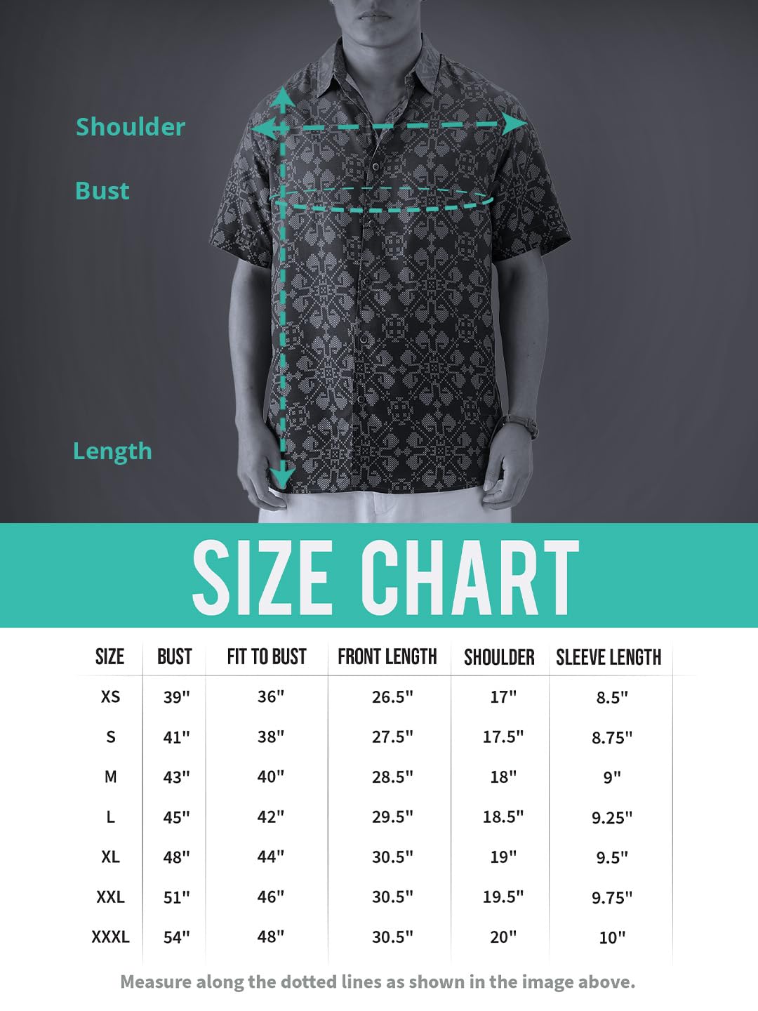 • Size Guide: XXS (30″), XS (32″), S (34″), M (36″), L (38″), XL (40″), XXL (42″)