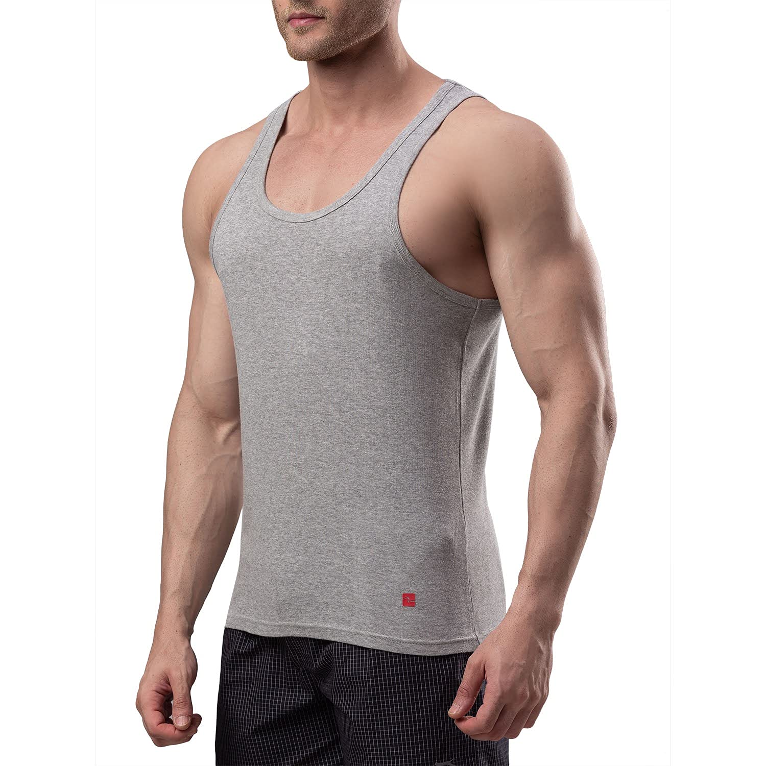 Underjeans Men Grey Cotton Blend Vest