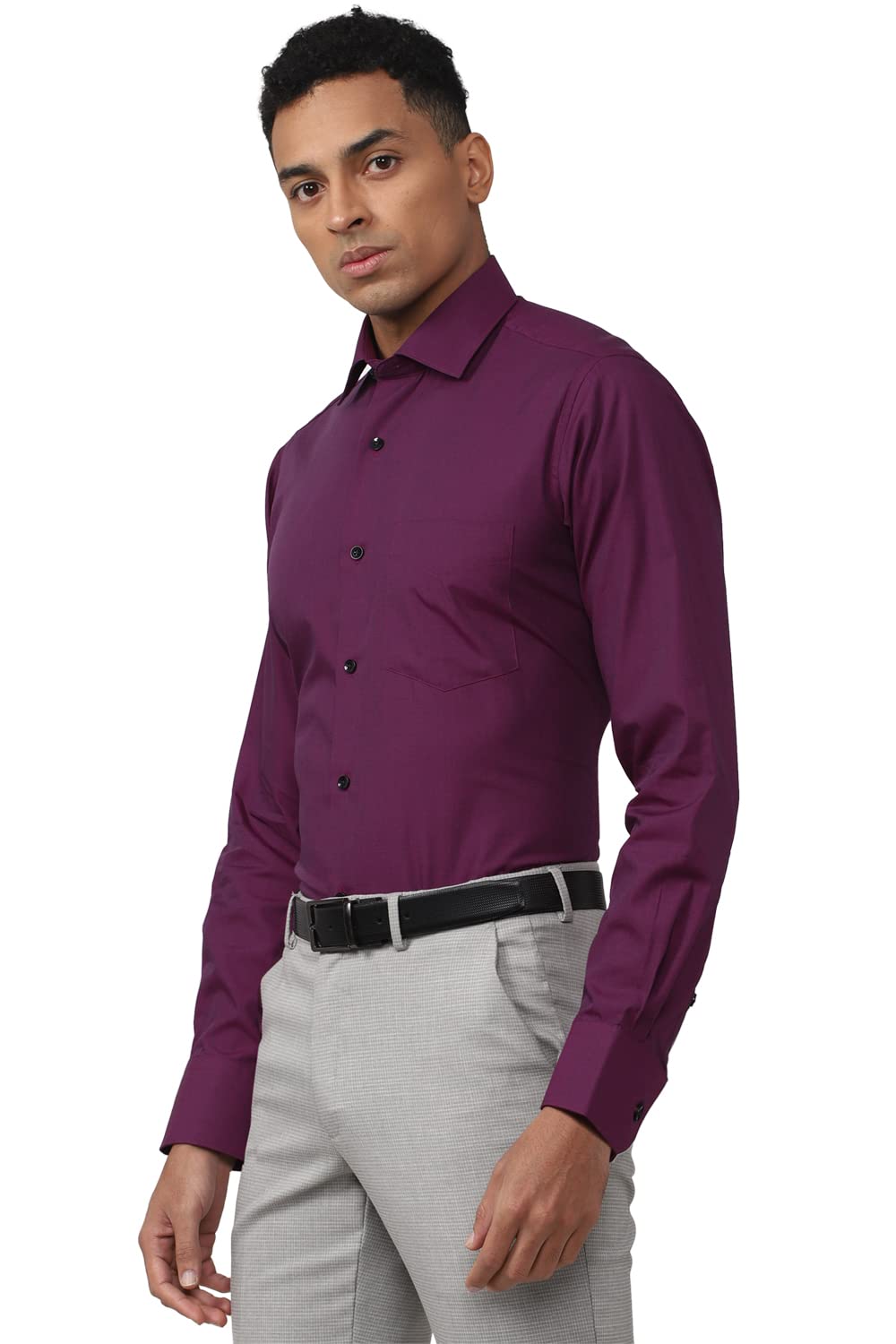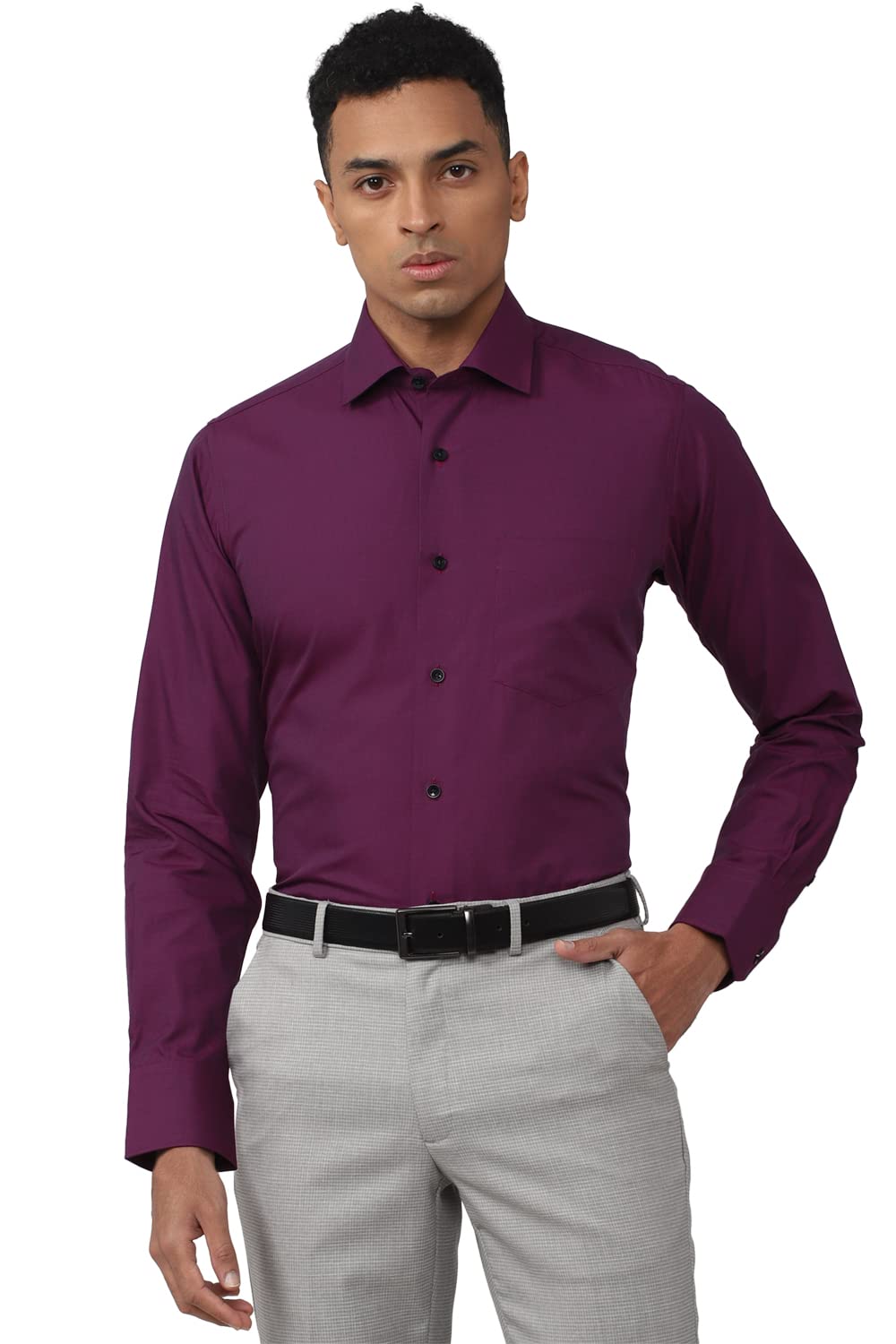 Upgrade your wardrobe with this Blue Solid shirt, tailored in Regular Fit from Van Heusen by Van Heusen.