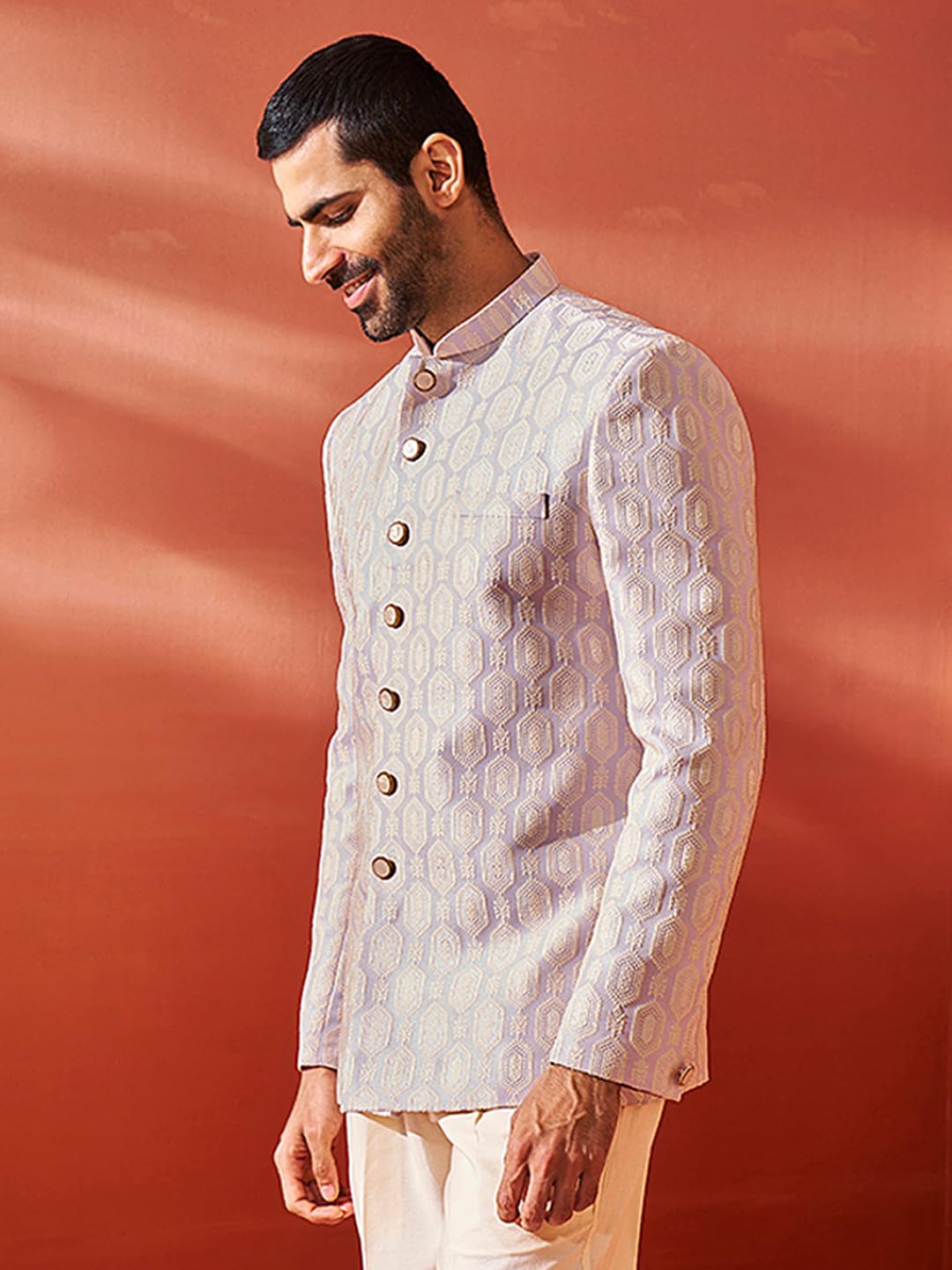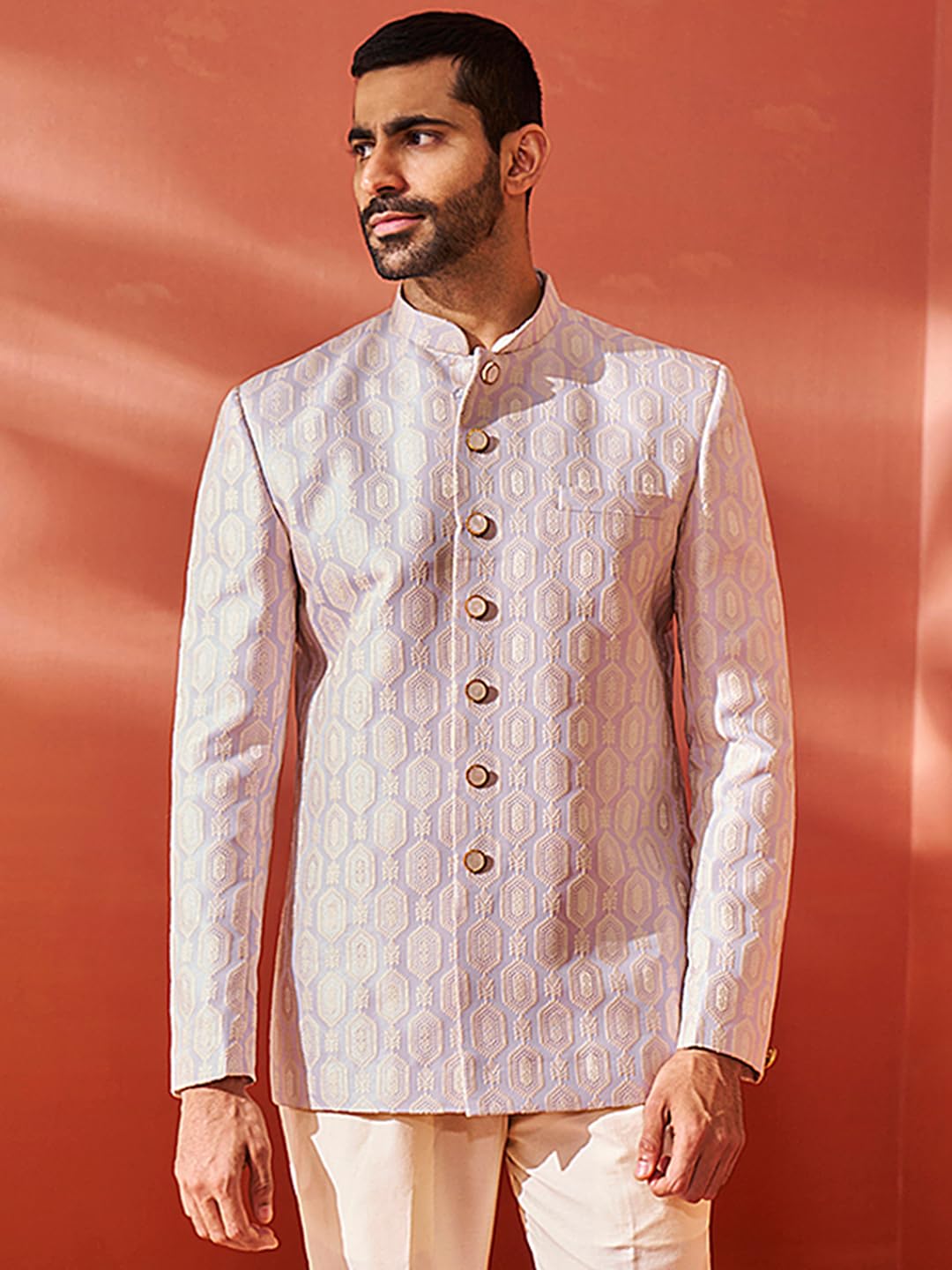 - Fabric: Silk Blend | Contents: a Silk Blend Jacquard Jodhpuri for Men.